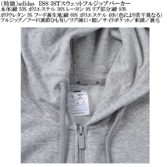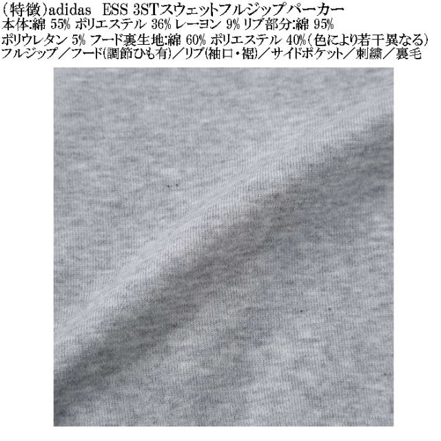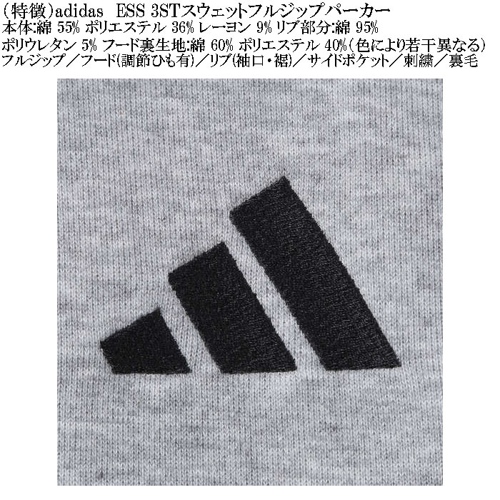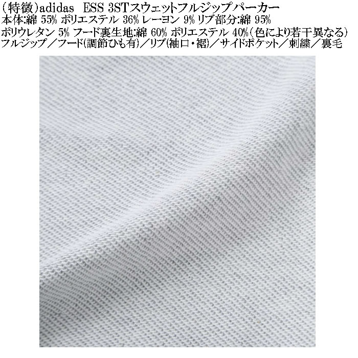 adidasのESS 3STスウェットフルジップパーカーです。
