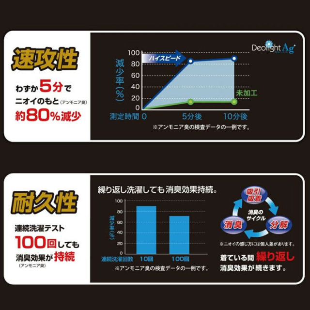繰り返し洗濯しても消臭効果が持続します。