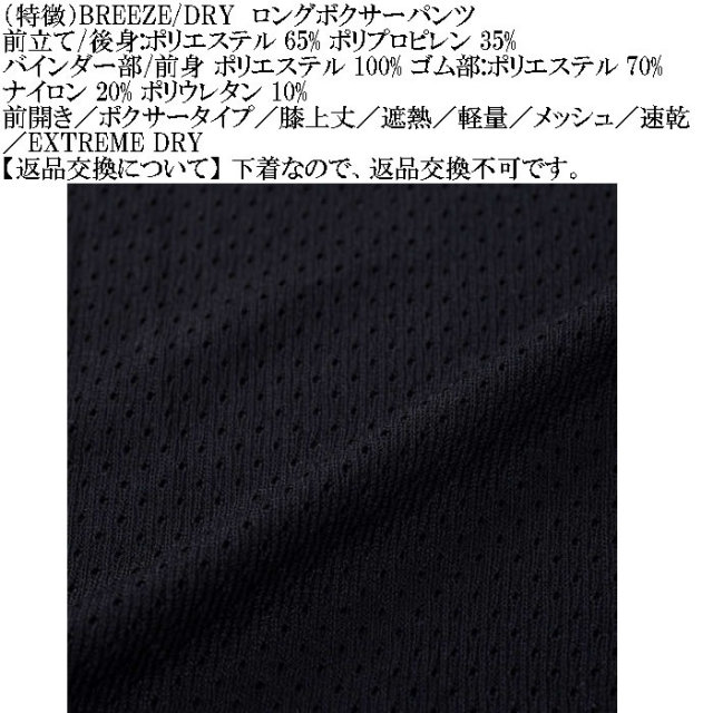 前開き/ボクサータイプ/膝上丈/遮熱/軽量/メッシュ/速乾/EXTREME DRY