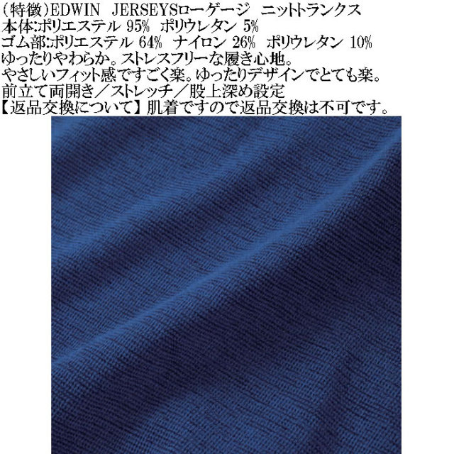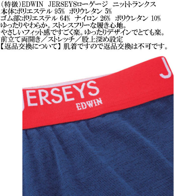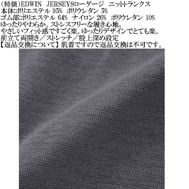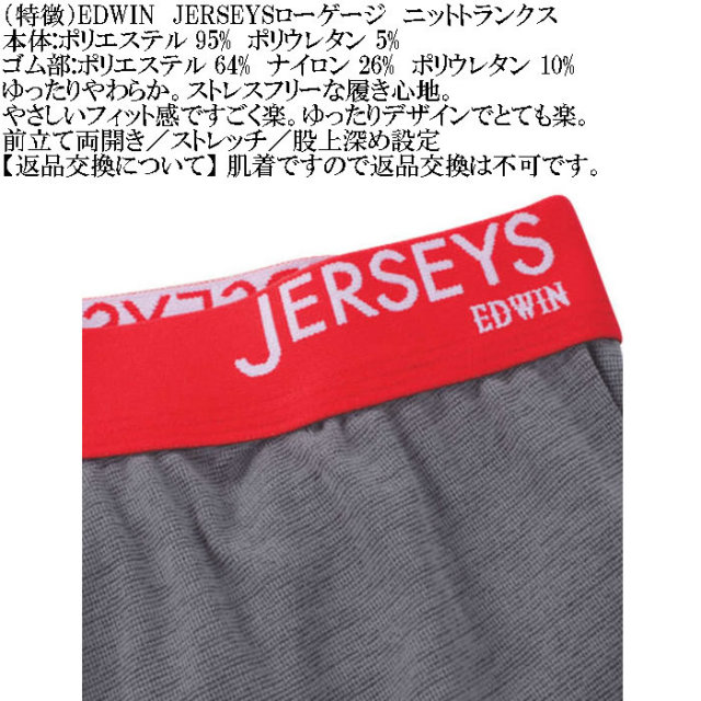 EDWINのJERSEYSローゲージストレッチカチオンミックスニットトランクスです。