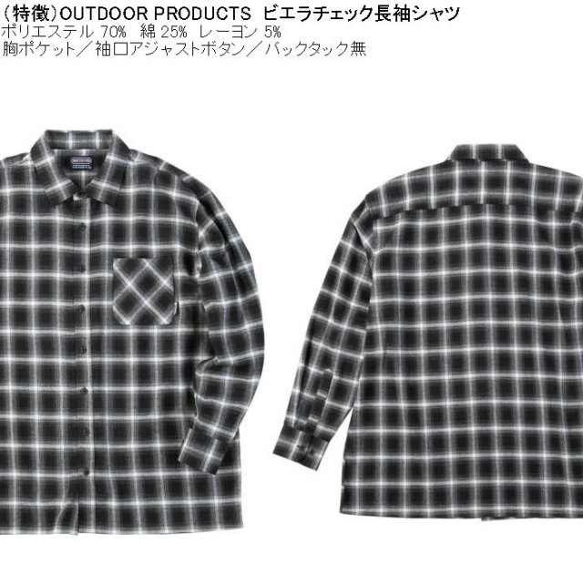 OUTDOOR PRODUCTSのビエラチェック長袖シャツです。