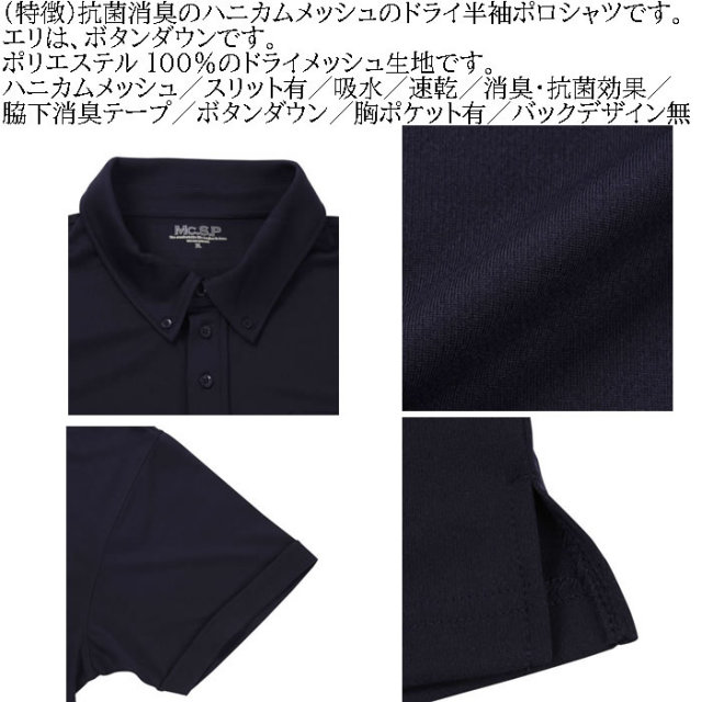 ハニカムメッシュボタンダウン半袖ポロシャツです。