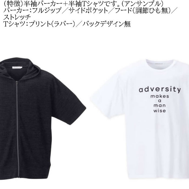 パーカーと、Tシャツはアンサンブル(セット販売)です。