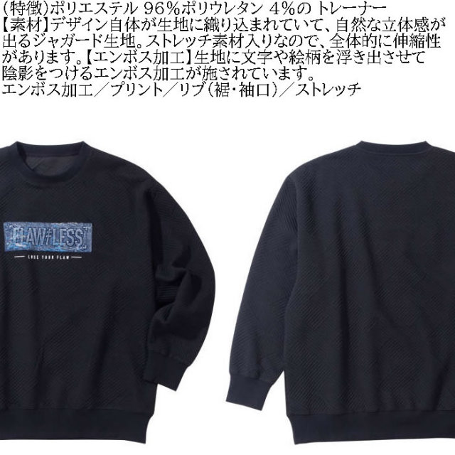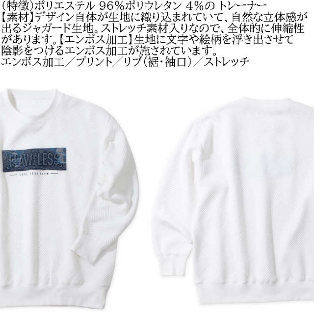 エンボス加工/プリント/リブ(裾・袖口)/ストレッチ