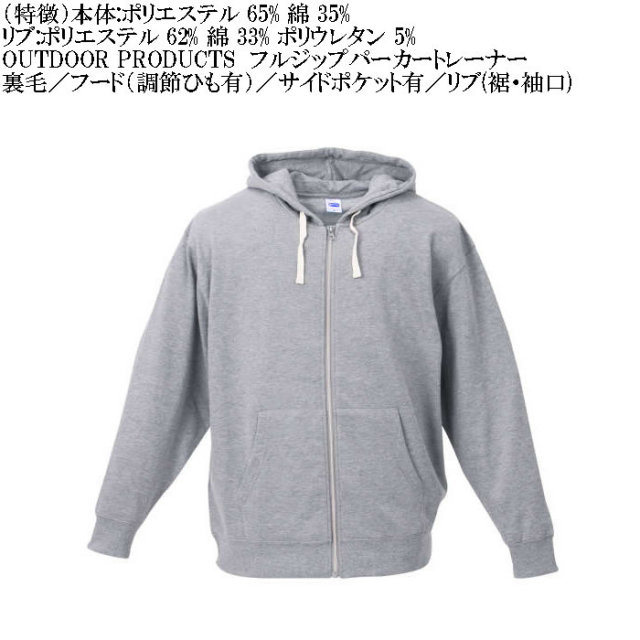OUTDOOR PRODUCTSのフルジップパーカー。