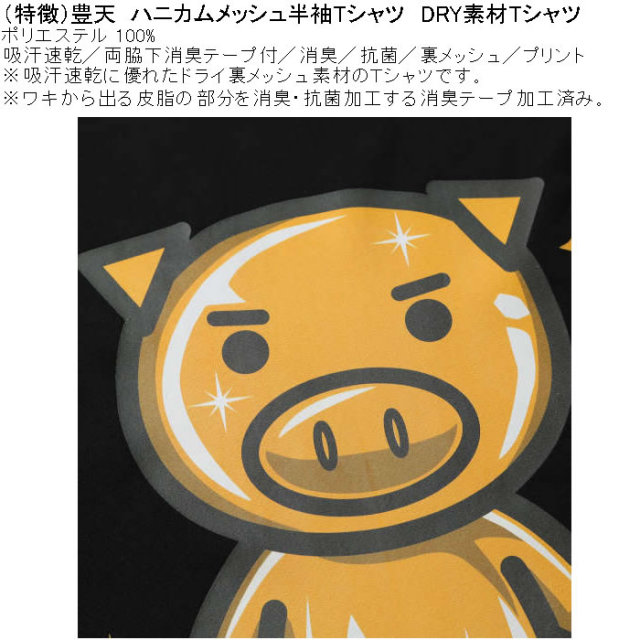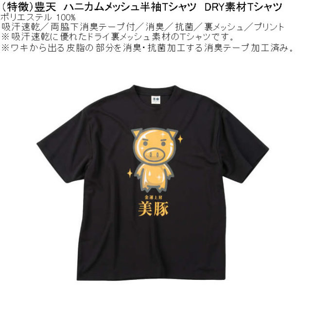 豊天の金運上昇美豚DRYハニカムメッシュ半袖Tシャツです。