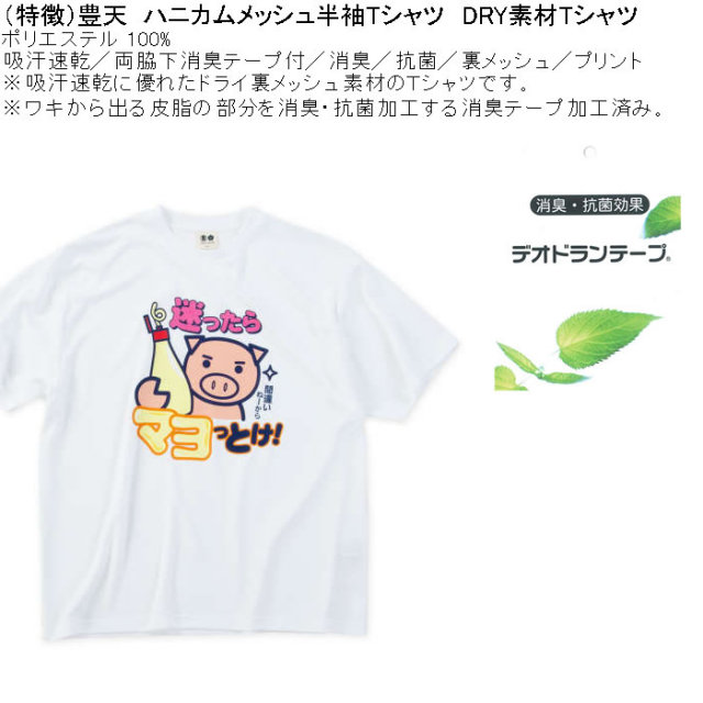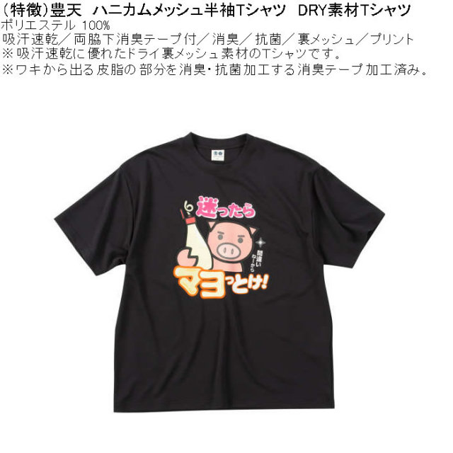 豊天の迷ったらマヨっとけ!美豚DRYハニカムメッシュ半袖Tシャツです。