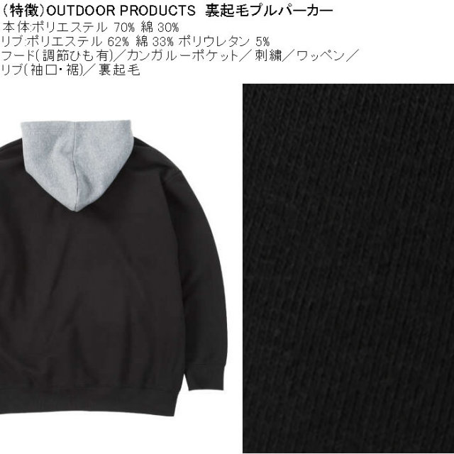 OUTDOOR PRODUCTSの裏起毛プルパーカーです。