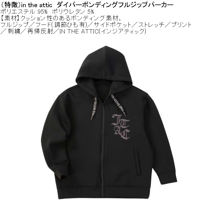 フルジップ/フード(調節ひも有)/サイドポケット/ストレッチ/プリント/刺繍/再帰反射