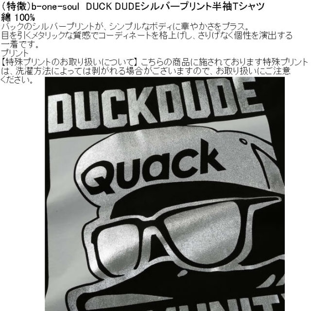 b-one-soulのDUCK DUDEシルバープリント半袖Tシャツです。