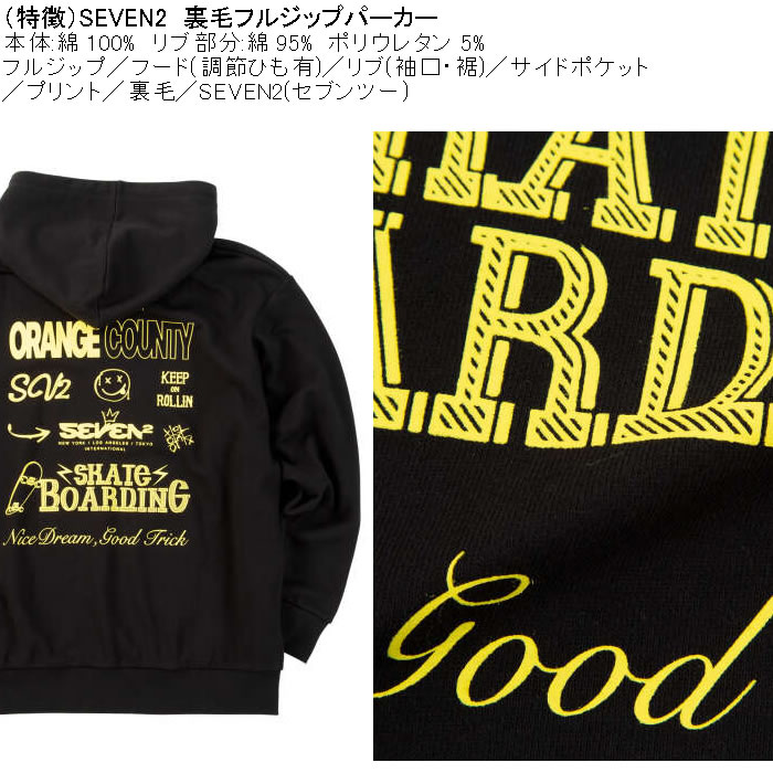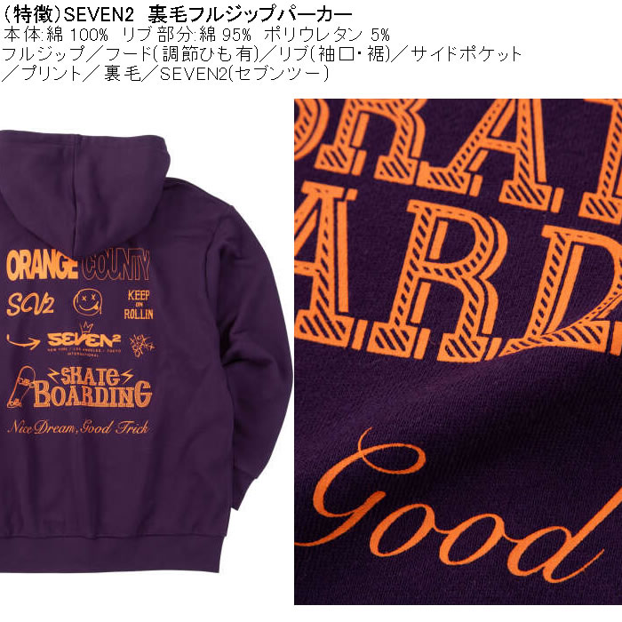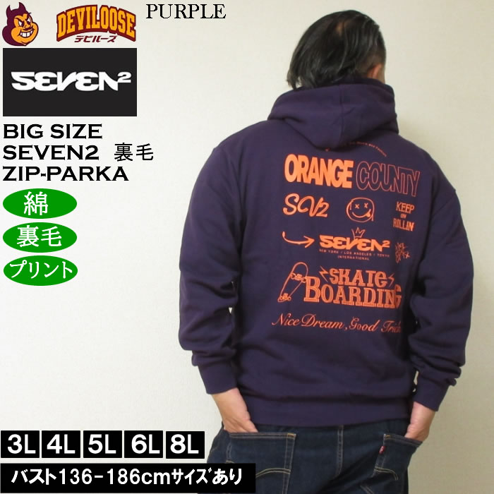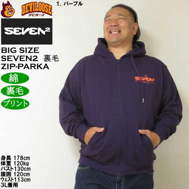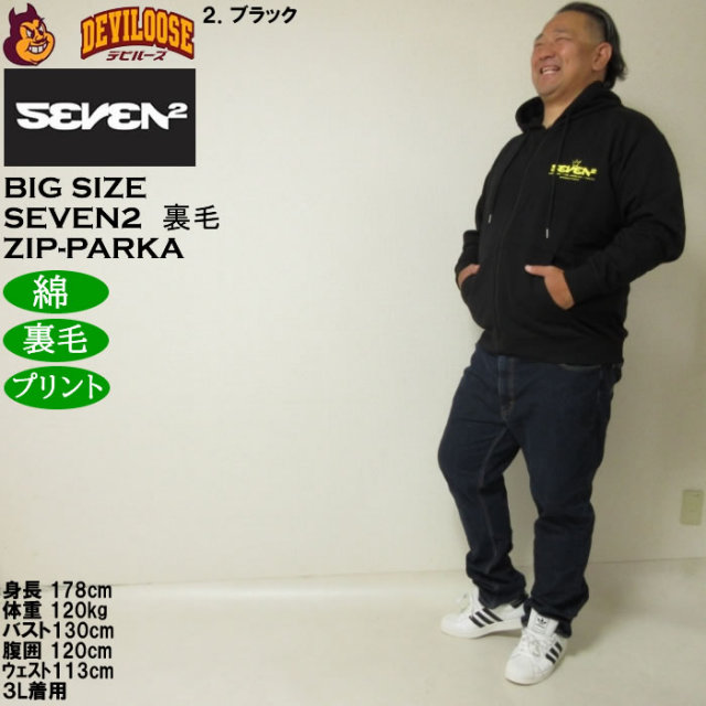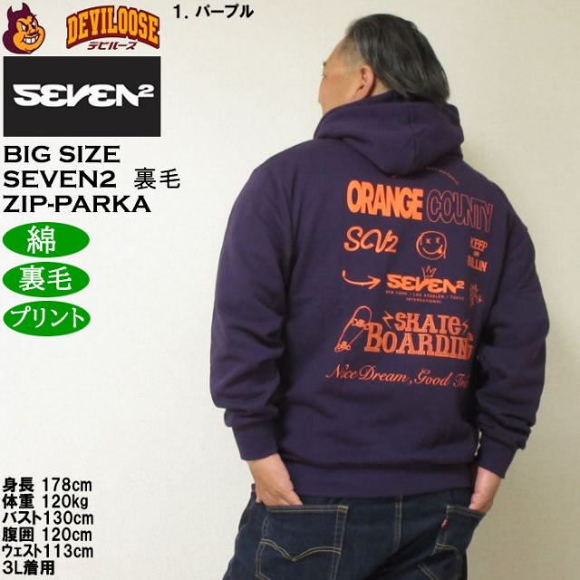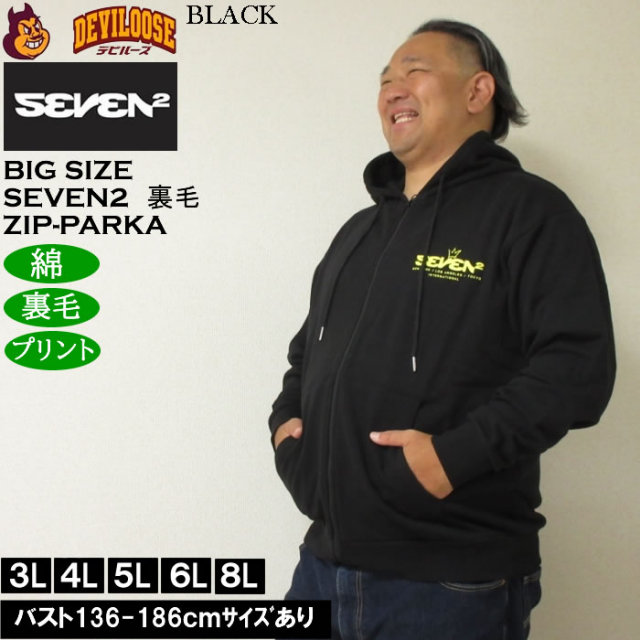 大きいサイズ メンズ SEVEN2 裏毛 フルジップ パーカー(メーカー取寄)綿 コットン プリント セブンツー 3L 4L 5L 6L 8L キングサイズ 大きい サイズ ブランド 服 おしゃれ カジュアル デビルーズ