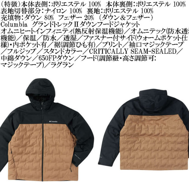 ColumbiaのグランドトレックⅡダウンフードジャケットです。