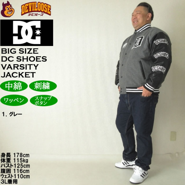 ストリート感あふれるディーシーシューズのスタジアムジャケット。