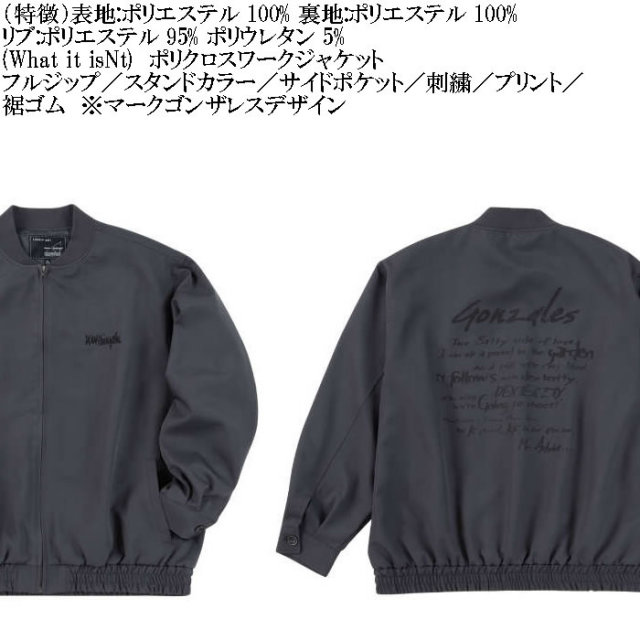 | ― | 表地:ポリエステル 100% 裏地:ポリエステル 100% リブ:ポリエステル 95% ポリウレタン 5% |