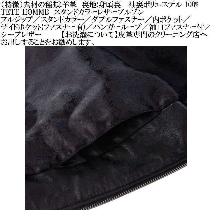 TETE HOMMEのスタンドカラーレザーブルゾンです。