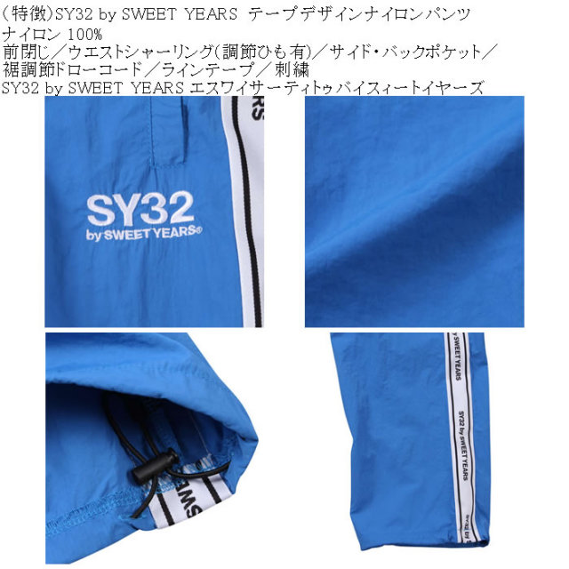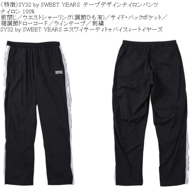 SY32 by SWEET YEARSのテープデザインナイロンパンツです。