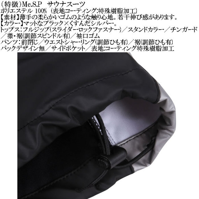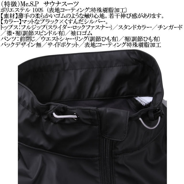 体温を上げ、発汗を促すMc.S.Pのサウナスーツ。