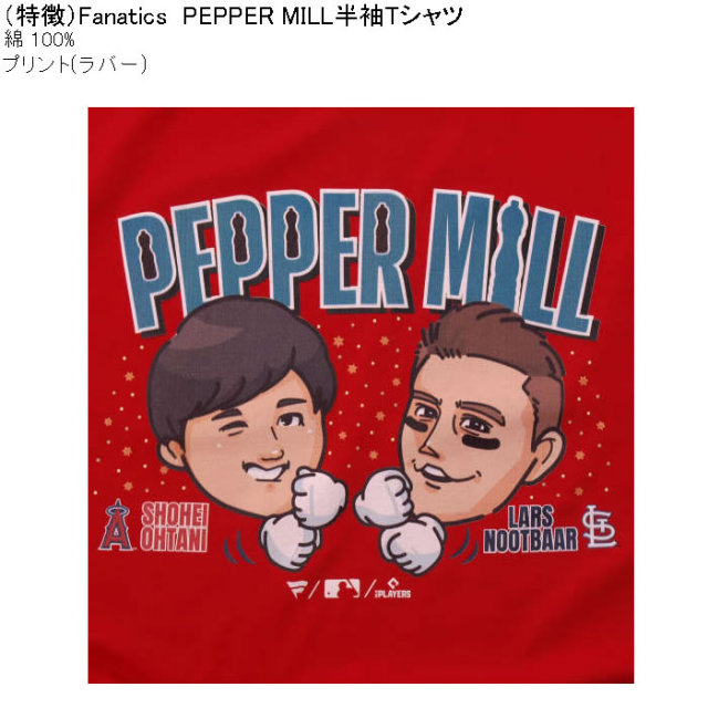 大谷選手とヌートバー選手のペッパーミルTシャツ。