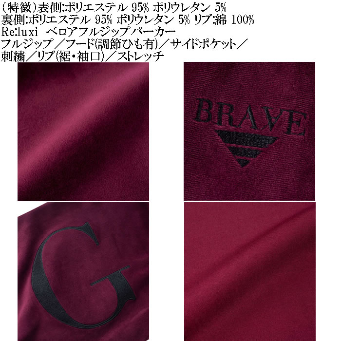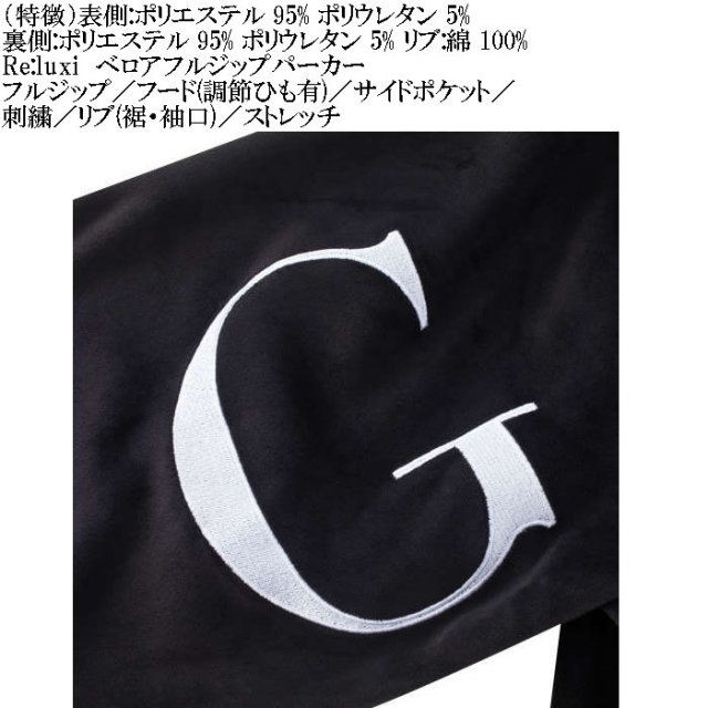 フルジップ/フード(調節ひも有)/サイドポケット/刺繍/リブ(裾・袖口)/ストレッチ