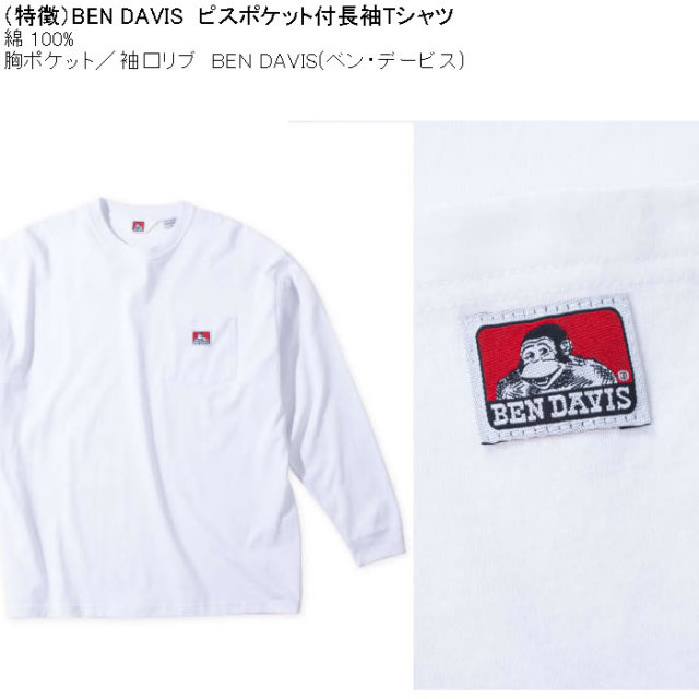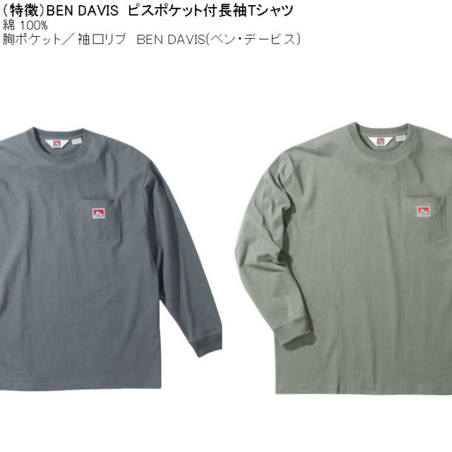 BEN DAVISのピスポケット付長袖Tシャツです。