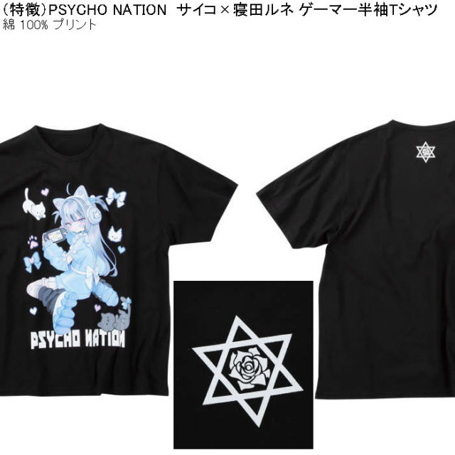 PSYCHO NATIONのサイコ×寝田ルネ ゲーマー半袖Tシャツです。