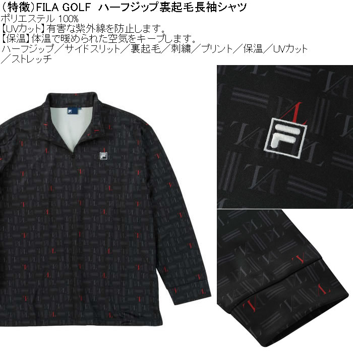 FILA GOLFのハーフジップ裏起毛長袖シャツです。