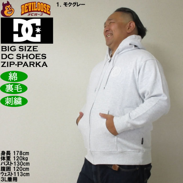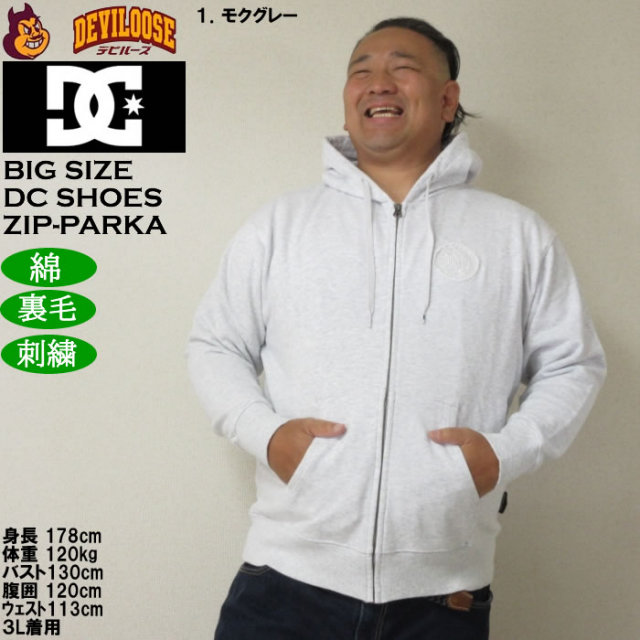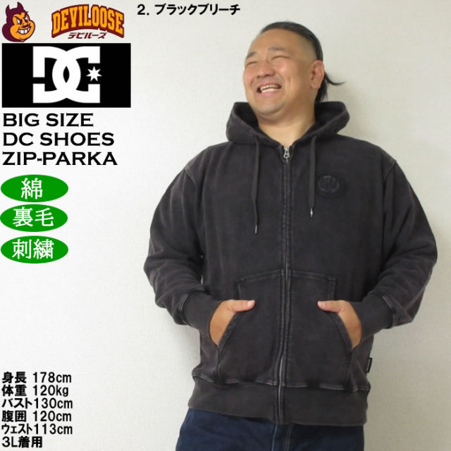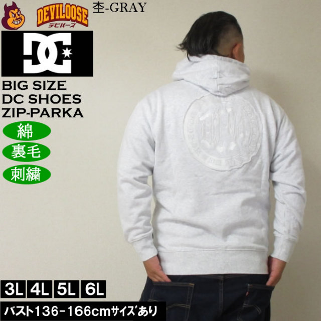 バックのビッグロゴが印象的なディーシーシューズのパーカー。