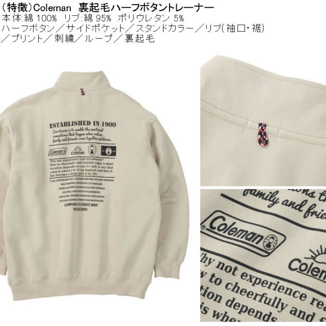 Colemanの裏起毛ハーフボタントレーナーです。
