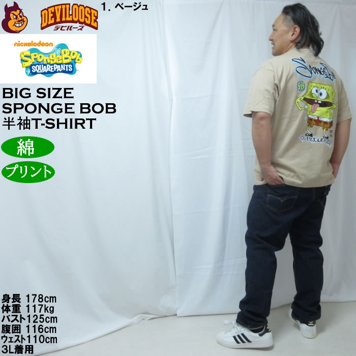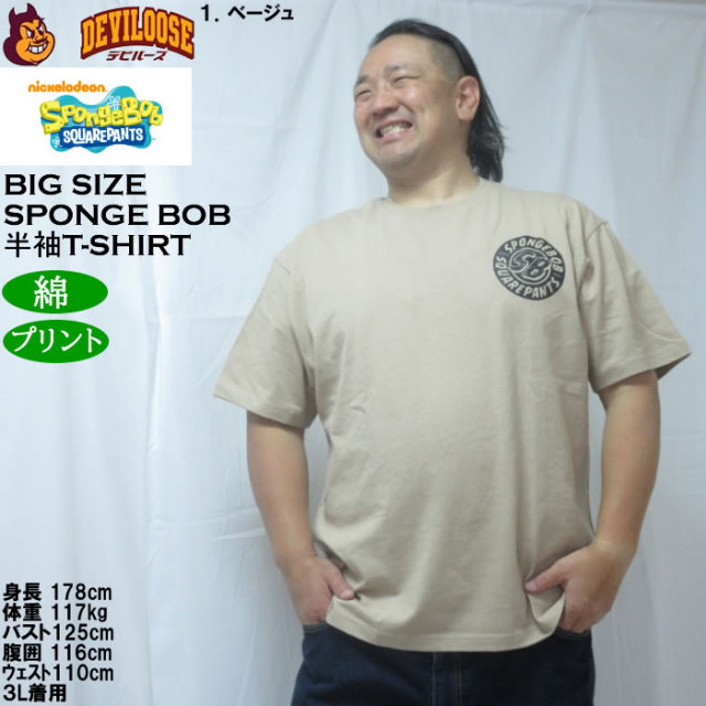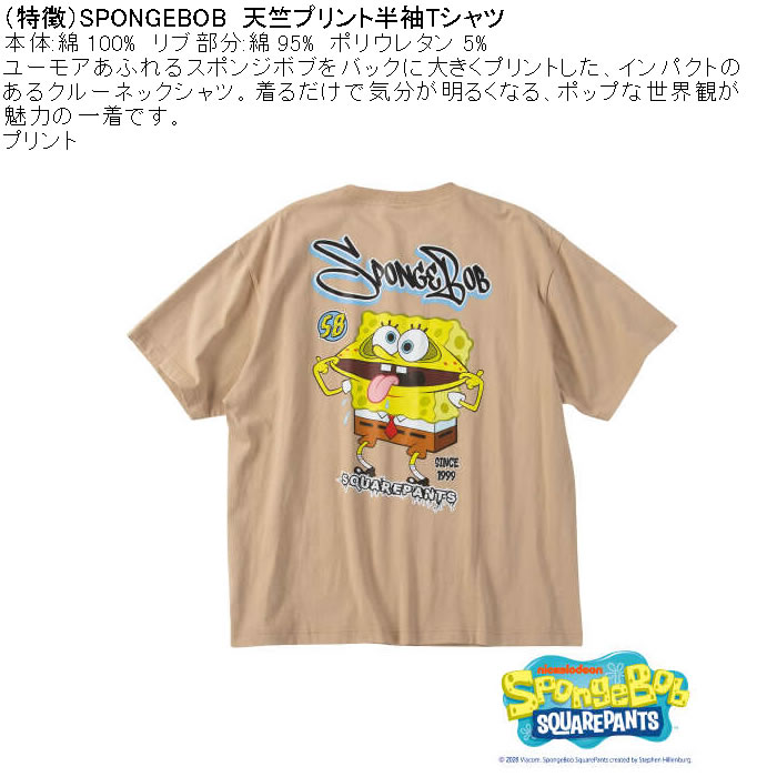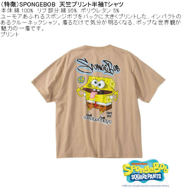 SPONGEBOBのコットン天竺プリント半袖Tシャツです。