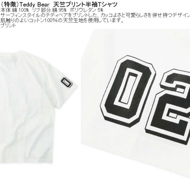 Teddy Bearの天竺プリント半袖コットンTシャツです。