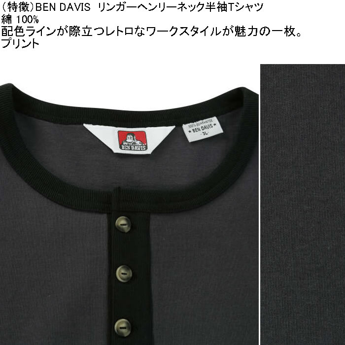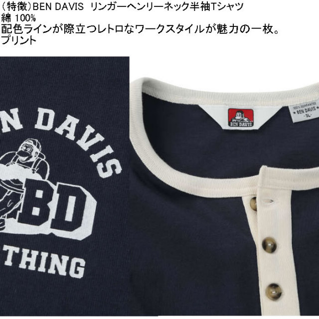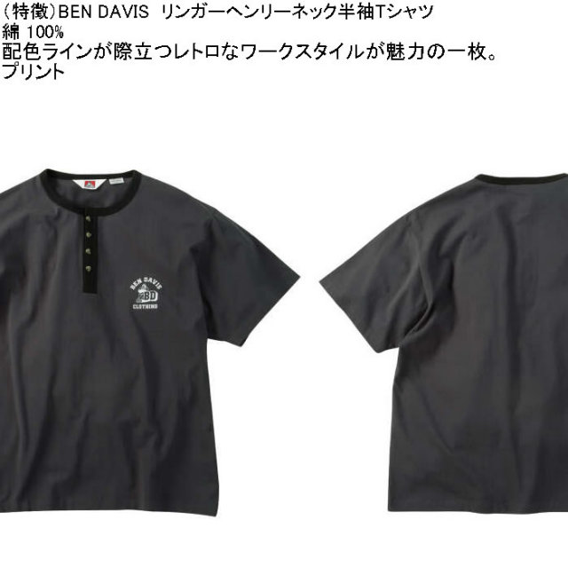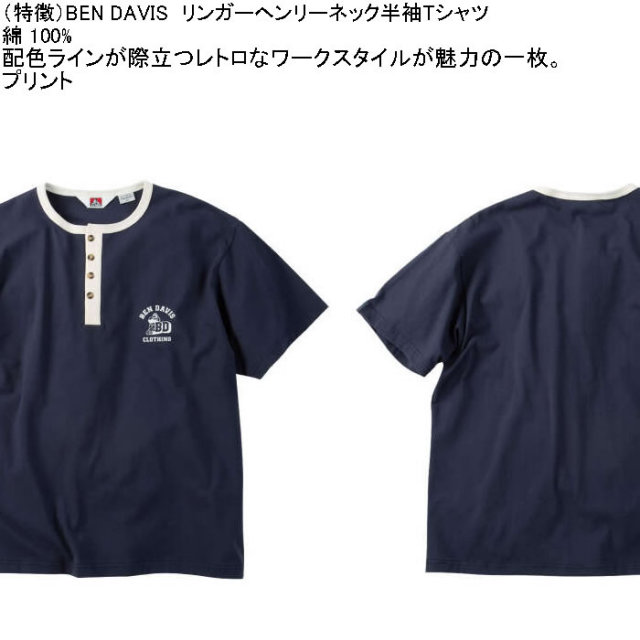BEN DAVISのリンガーヘンリーネック半袖Tシャツです。