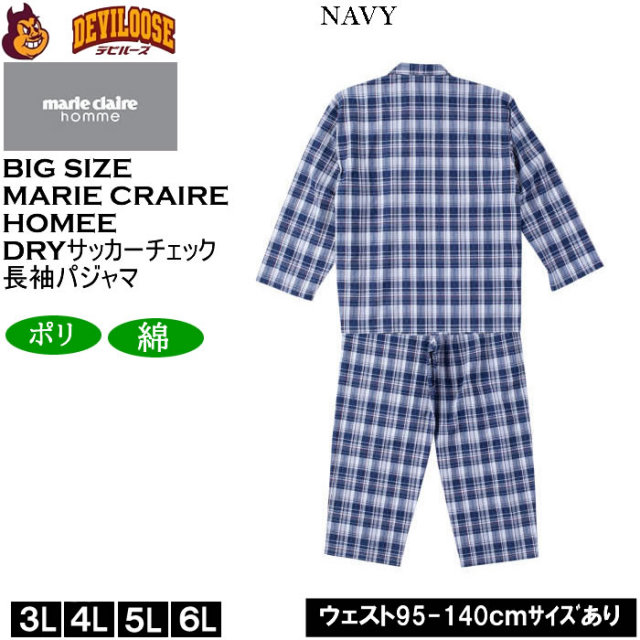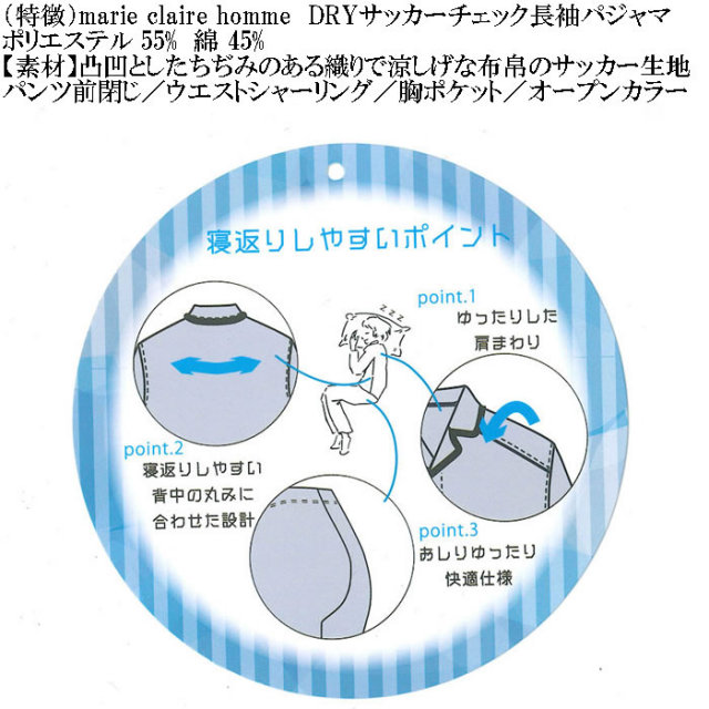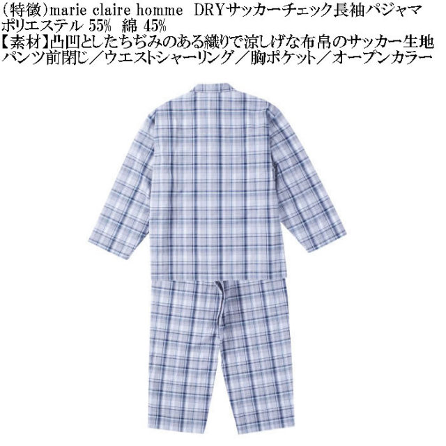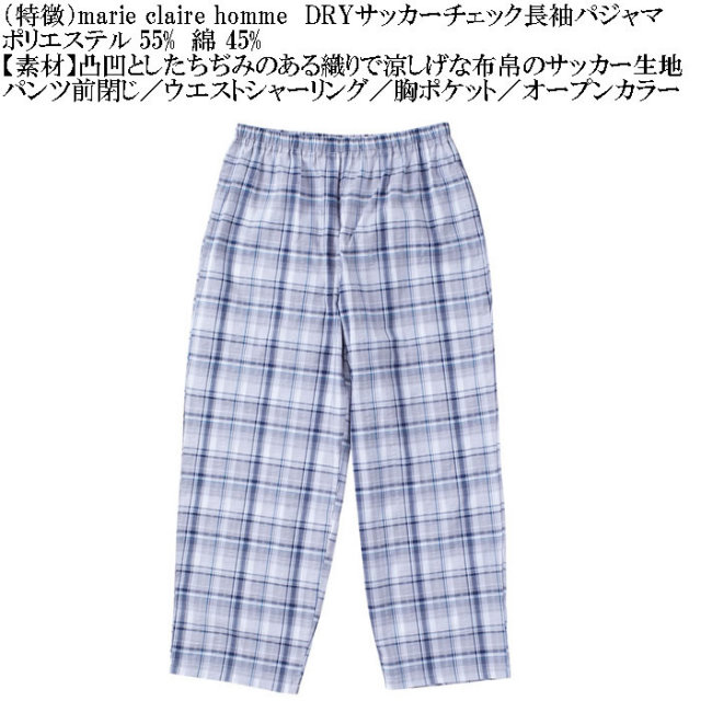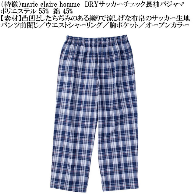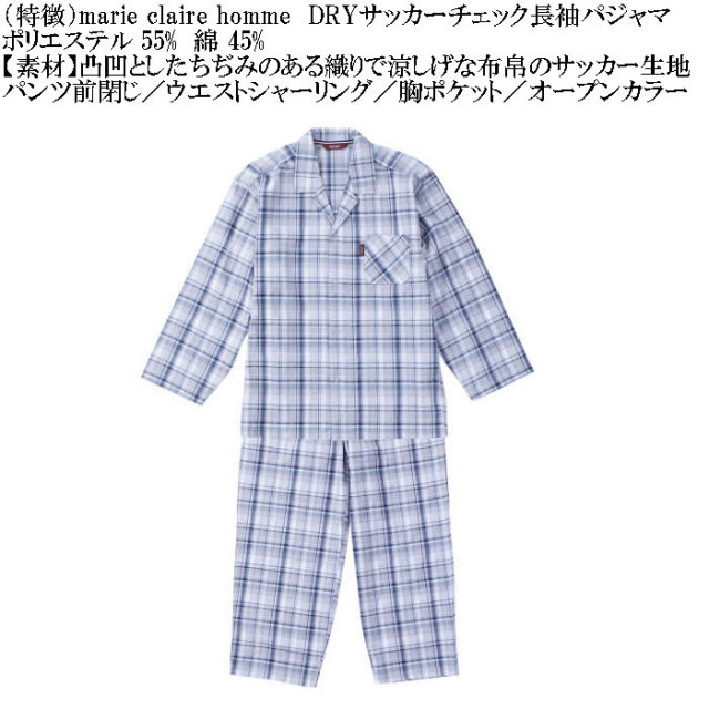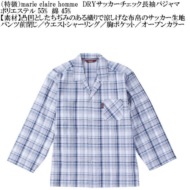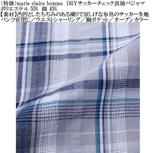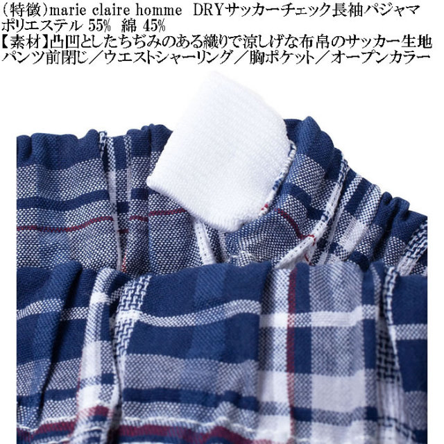 marie claire hommeのDRYサッカーチェック長袖パジャマです。