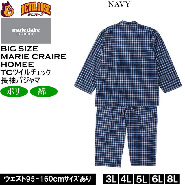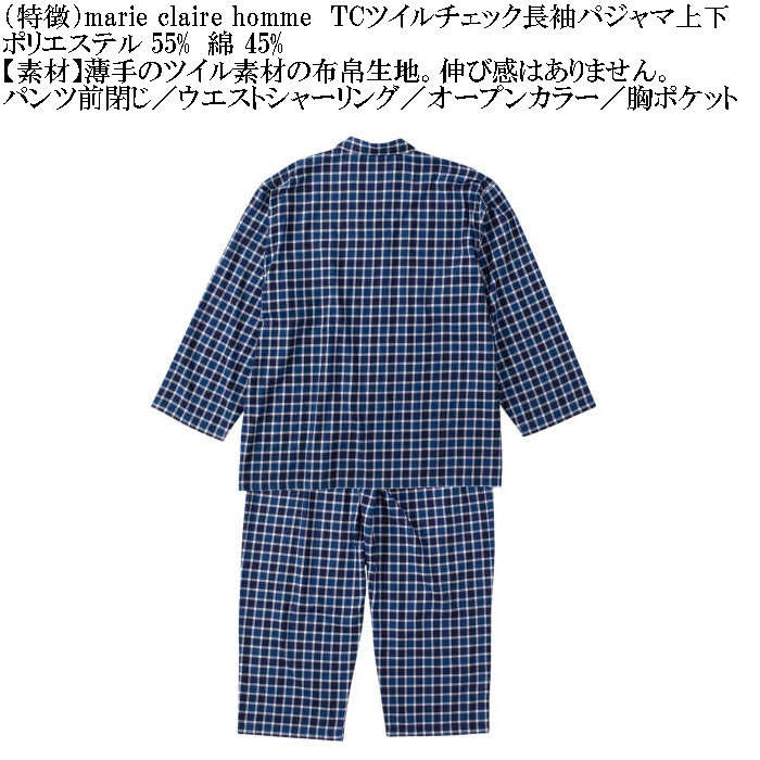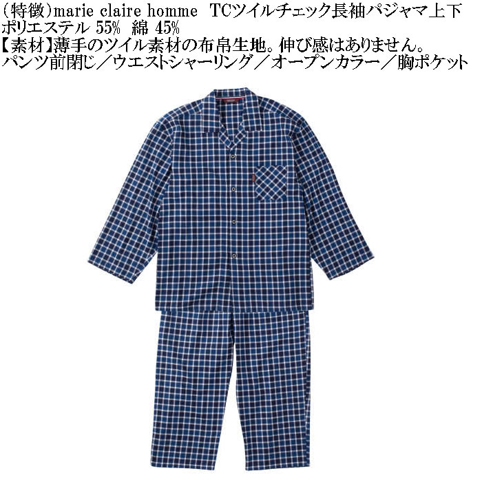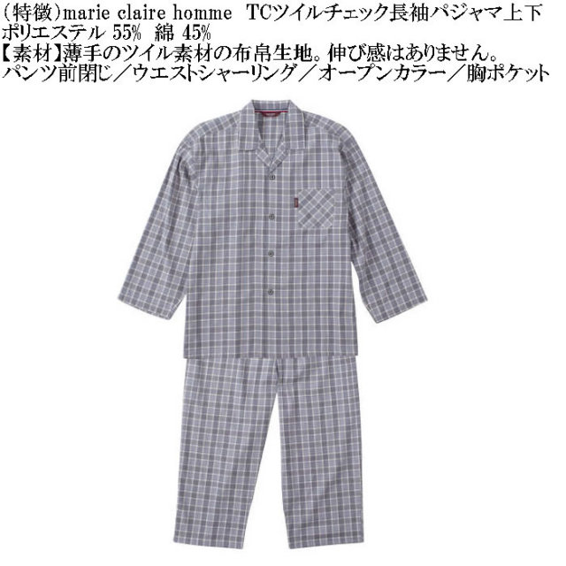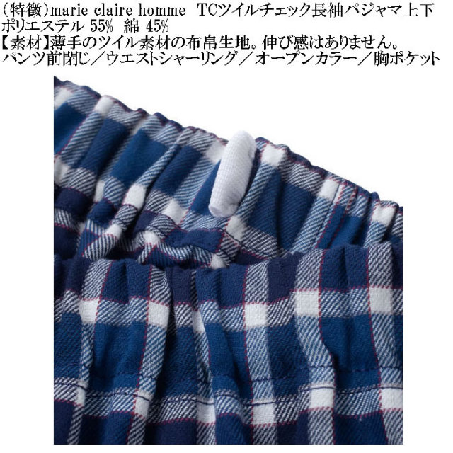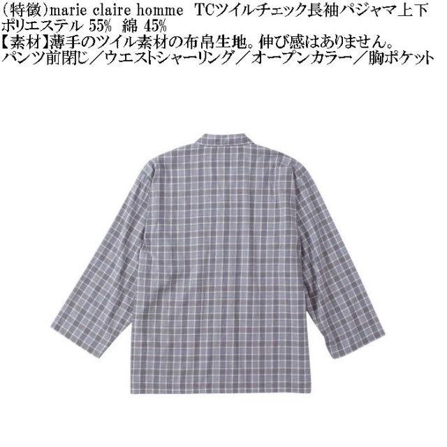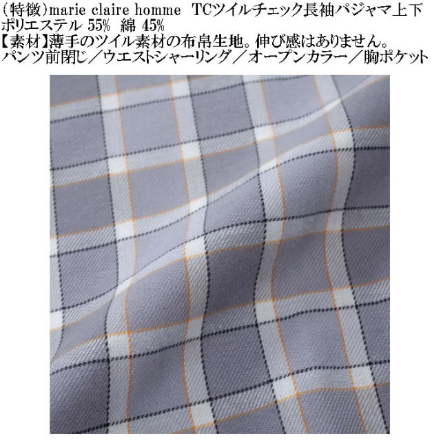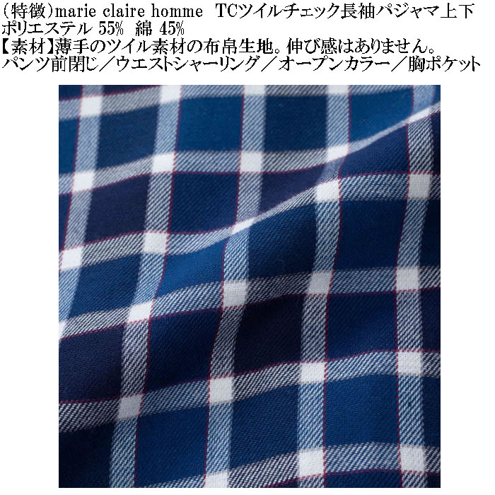 marie claire hommeのTCツイルチェック長袖パジャマです。